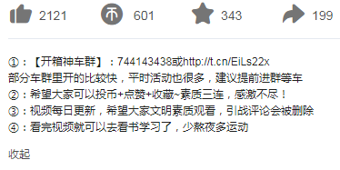 而在他的每一個視頻的簡介部分都能夠看到他有一個名叫“開箱神車群”的群組。